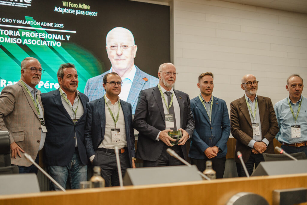 Como colofón a la jornada, y por sorpresa, se entregó la insignia de oro de ADINE a Juan Ramón Pérez presidente de la asociación y representante de Neumáticos Soledad, en reconocimiento a su liderazgo, trayectoria en defensa de los intereses del sector y compromiso asociativo. La entrega estuvo a cargo de la Junta Directiva de ADINE y su secretario ejecutivo, Óscar Bas, generando una emotiva ovación entre los asistentes.